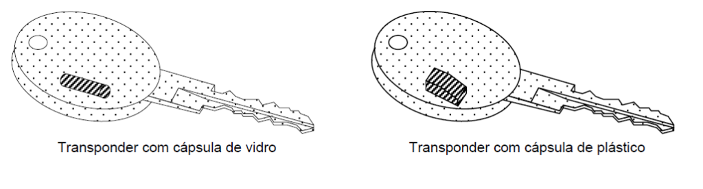 2) Examine a existência do “transponder” presente na chave de ignição: